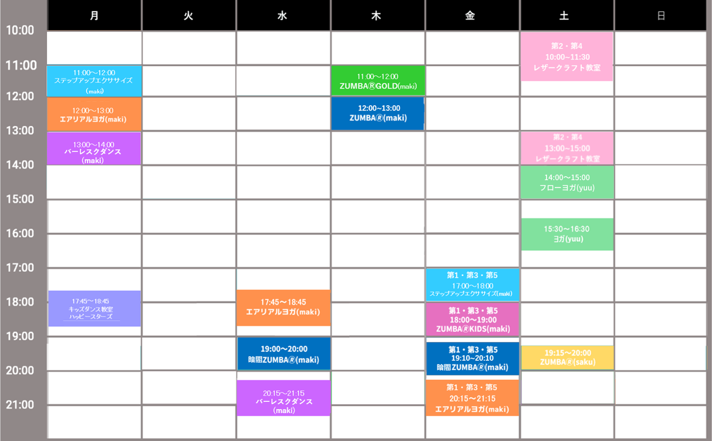 所属インストラクターごとに内容も様々。是非ご興味のあるレッスンを御覧ください。